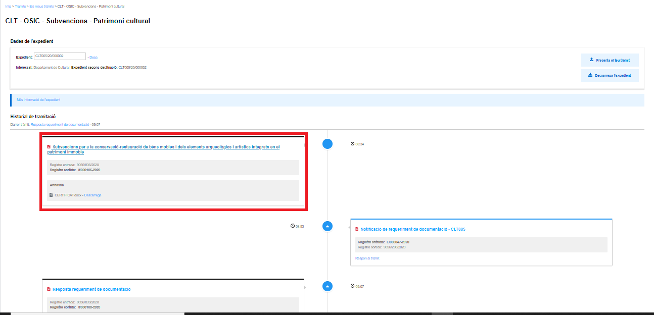 Selecciona el tràmit que vols visualitzar, prement damunt del títol.