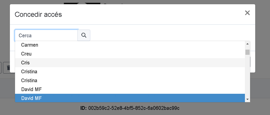 En ambos casos, acceder o revocar acceso, se visualizará una lupa que facilita la búsqueda de los destinatarios para conceder o revocar el acceso en cuestión.