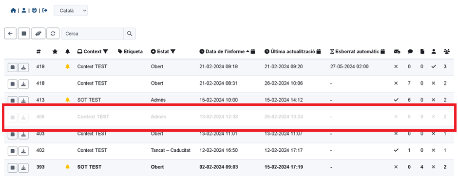 La persona destinataria que transfiere la denuncia, como consecuencia, deja de tener acceso a la misma. Le aparecerá en un color más claro (señal que la había tenido, pero ahora ya no puede acceder).