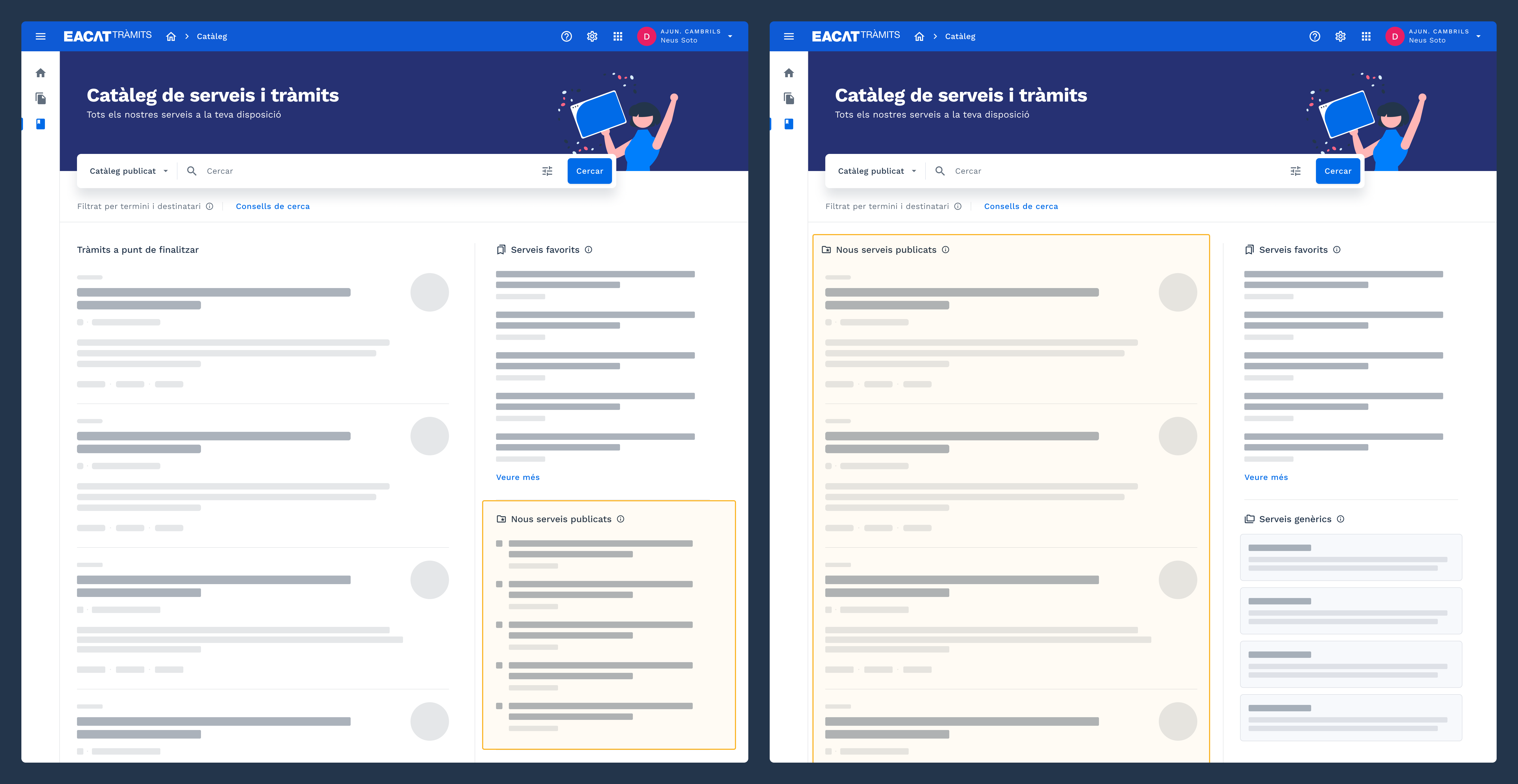 Esta sección se encuentra justo debajo de la de los Servicios favoritos . Ahora bien, cuando no hay ningún trámite a punto de finalizar pasa a ocupar su sitio, en la parte superior izquierda debajo de la barra de filtros.